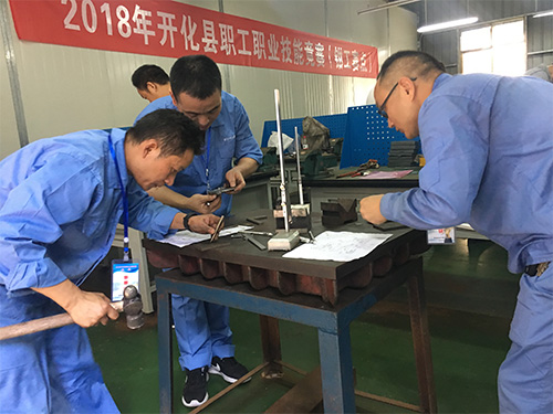 6月中旬,開化元通參加浙江開化工業(yè)園區(qū)舉辦的企業(yè)員工安全隱患排查技能比武暨消防技能比武活動(dòng)榮獲團(tuán)體第一名;緊接著參加縣安全知識(shí)競(jìng)賽榮獲團(tuán)體第三名。日前,公司派出8名鉗工參加縣人力資源與社會(huì)保障局舉辦的“職工職業(yè)技能競(jìng)賽(鉗工)”,全縣參加此項(xiàng)目50余人。本次競(jìng)賽分作理論考試和實(shí)際操作,公司選手在理論考試上認(rèn)真答題,在實(shí)際操作上摩拳擦掌,拿出自己的看家本事,或測(cè)、或量、或磨、或鋸,個(gè)個(gè)卯足了勁。通過激烈的角逐,公司鉗工方文星喜獲二等獎(jiǎng),葉禮群和王峻華喜獲三等獎(jiǎng)。